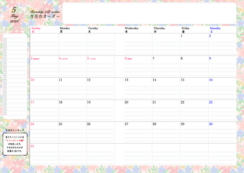 毎月オーダーを書く欄がたっぷり!
